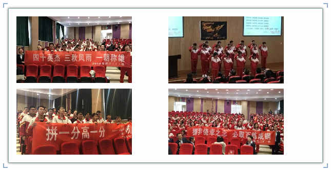 19届高三年级“壮我雄心,决战高考”80日誓师大会时间:2019-03-23 2019年3月21日,学校举行了“2019届高三年级黄金80天誓师”大会,学校领导和高三全体老师参加了此次大会。